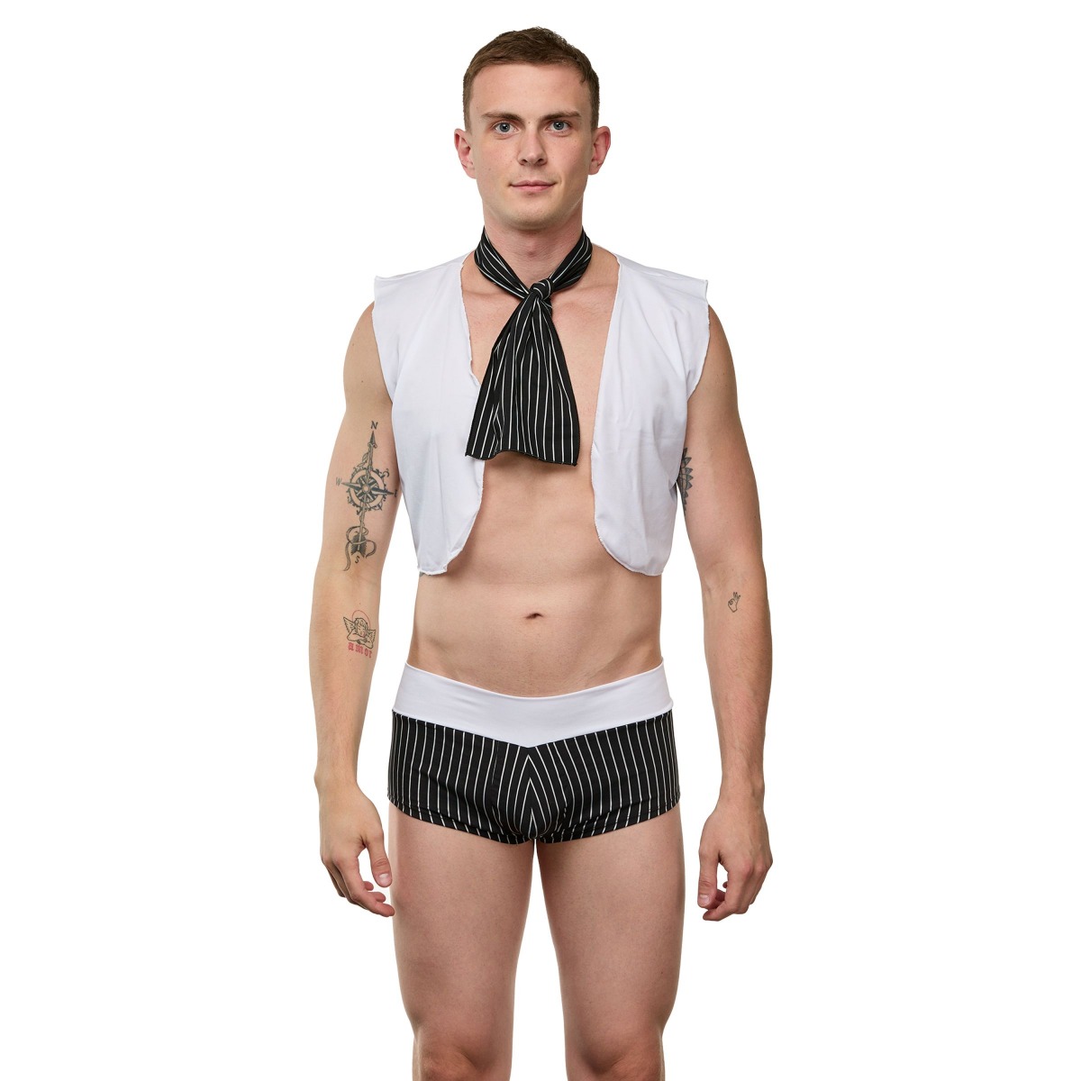 Мужской костюм «Синдбад» из 3 предметов: хипсов с вырезом, жилетки и галстука. В комплекте: трусы-хипсы, жилетка, галстук.