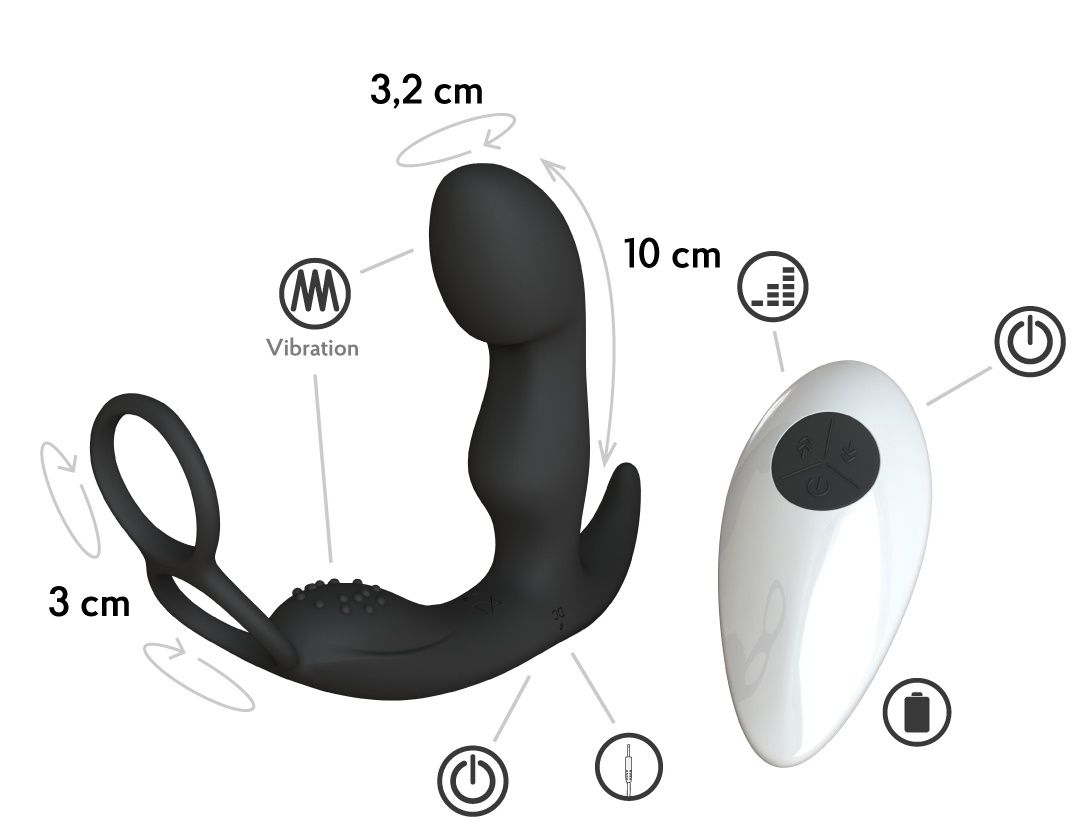 Стильный и строгий анальный стимулятор Taurus предназначен для мужчин, которые не боятся экспериментов! Простота в управлении и анатомическая форма, обеспечивающая легкое проникновение, позволяют использовать его и в качестве массажера простаты и для получения взрывных оргазмов с помощью нескольких режимов вибрации! Эластичные кольца можно надеть на основание пениса и мошонку для дополнительной стимуляции. Нежное силиконовое покрытие - это современный качественный материал, который не содержит вредных веществ и легко моется. DC зарядка, перезаряжаемый аккумулятор, простое управление одной кнопкой, 2 часа работы - 1,5 часа зарядки. В комплекте: вибромассажер, пульт ДУ, USB-провод для зарядки, фирменный мешочек для хранения, инструкция. Рабочая длина - 10 см. Диаметр эрекционного кольца - 3 см.