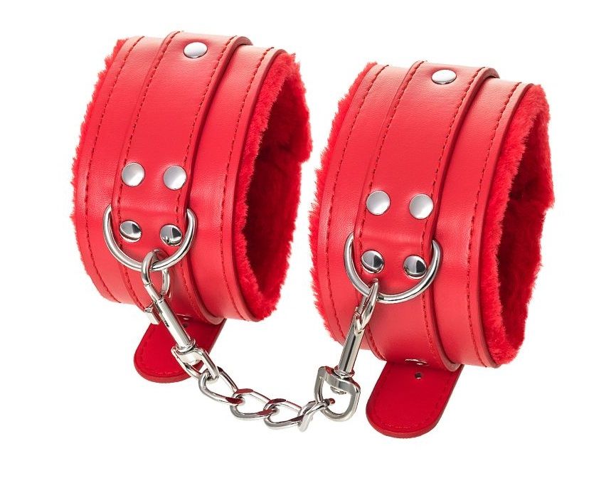 Оковы на ноги яркого красного цвета с металлической отделкой говорят вовсе не об агрессии. Эти произведения искусства говорят о страсти, которую можно проявить, но только с разрешения Доминанта. Подклад из искусственного меха делает ношение этих оков более комфортным, но расслабиться в них не получится – цепочка на карабинах сильно ограничивает свободу действий. Длина поножей позволяет использовать их практически на любой размер ног. Отрегулировать размер и силу обхвата легко с помощью ремешка и металлической пряжки. Оковы – классический предмет для игры в подчинение, обязательный для начинающих и опытных поклонников БДСМ. Дополните комплект аксессуарами - ошейником, кляпом, наручниками и продемонстрируйте что значит грубое обращение и полный контроль над свободой. Ширина - 5,5 см. Длина сцепки - 15,5 см.Характеристики
