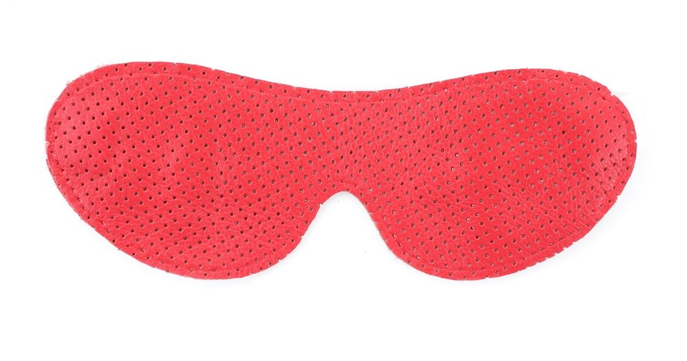 Маска из натуральной кожи на резиночке. Декорирована ярко-красными крестиками. Имеет красный подклад из мягкой перфорированной кожи. Ширина - 7 см.