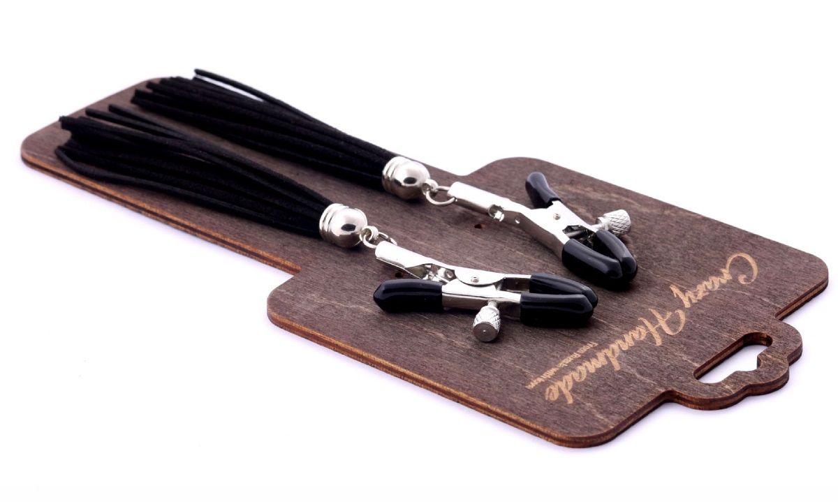 Зажимы на соски с черными замшевыми кисточками.