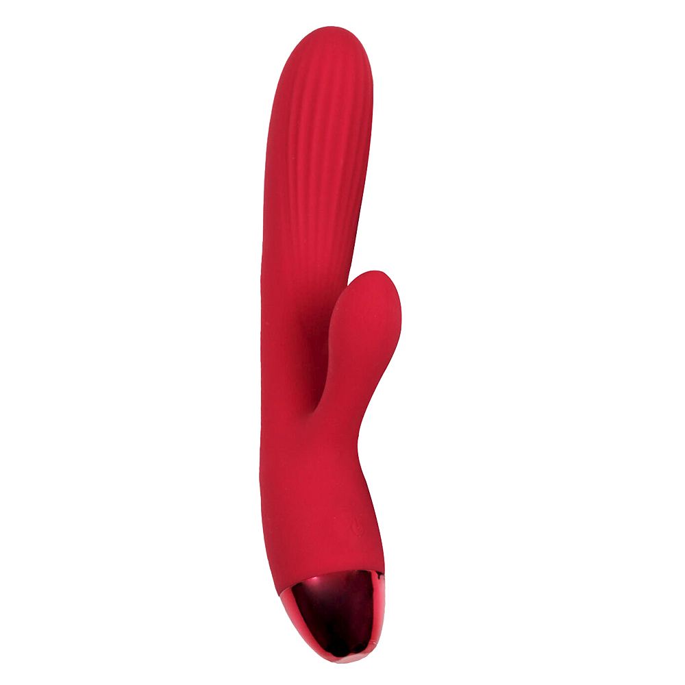 Игрушка внешне выглядит как классический вибратор-кролик, однако вибрирует у нее только клиторальный отросток, вагинальный же только пульсирует, благодаря чему игрушка производит толкающие (возвратно-поступательные) движения. Также игрушка нагревается до приятно-комфортной температуры 41 °С, что добавляет естественных ощущений. Степень влагозащиты не высокая, поэтому погружать в воду ее нельзя, к тому же разъем для зарядки штекерный и находится внизу под пластиковым колпачком. На вагинальном отростке ярко выраженные ребра, что дополняет стимуляцию. Для включения нажмите на кнопку в течение 1.5 секунд, после короткой вибрации устройство перейдет в режим ожидания. Нажмите на кнопку для смены режима вибрации и пульсации, всего режимов 7. В вагинальном отростке находится мотор пульсатора, в клиторальном – вибромотор. Дважды быстро нажмите на кнопку для включения режима нагрева. Нагрев выключается так же двумя короткими нажатиями на кнопку. Чтобы выключить устройство, зажмите и удерживайте кнопку в течение 1.5 секунд. Поверните против часовой стрелки и потяните нижнюю крышку на себя, откроется доступ к порту зарядки. Вставьте USB – наконечник в USB порт, а другой конец шнура в порт зарядки. Индикатор мигает во время зарядки и горит постоянно, когда зарядка завершена. После зарядки наденьте крышку на порт зарядки и закройте, повернув крышку по часовой стрелке. Обязательно заряжайте аккумулятор, когда игрушка полностью разряжена.