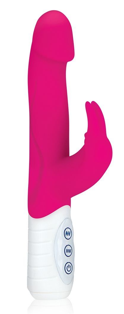 Самый невероятный вибратор с большим набором функций яркого розового цвета. Главное отличие от всех похожих вибраторов, что в игрушке 3 мотора! Имеет 7 режимов, включая прыгающие моторы, когда попеременно вздрагивает каждый моторчик. Два - в столе вибратора, один - в клиторальном стимуляторе, который выполнен в виде кролика. Игрушка из силикона медицинского качества. Водонепроницаем. Рабочая длина - 10,5 см.